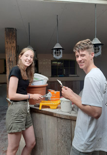 Met behulp van vele vrijwilligers, vrienden en vriendinnen van de Sleutelbloem was het een hele fijne en gezellige tijd en hebben we veel geleerd van elkaar. Er was voor ieder wat wils: springkussen, waterpret, creatief, muziek maken, snoep happen, les Nederlands, stoelen opknappen, spijker slaan, samen eten, dansen, zingen, stoep krijten, sport…