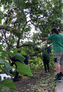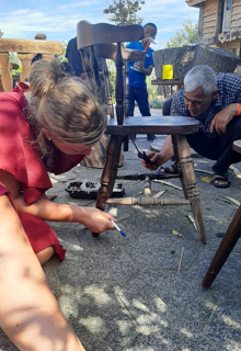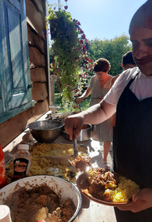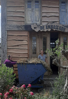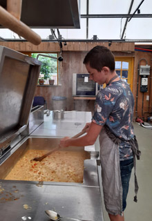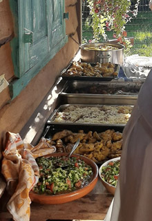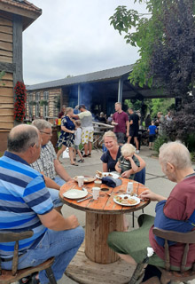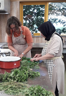 De vrouwen gingen Syrisch koken, de kinderen konden spelen en een aantal mannen was actief met het schuren en verven van houten stoelen. De rest zat lekker in de schaduw koffie te drinken en te kijken wat er zich allemaal op het terrein afspeelde. De gasten kwamen in de middag en werden `s avonds weer met bussen teruggebracht.