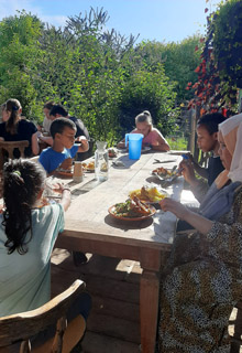 Drie woensdagen waren ze bij ons te gast. We zijn van elkaar gaan houden. Ook de Nederlandse lessen waren leuk en leerzaam. Ik heb nog nooit zo`n enthousiaste groep mensen aan de tafels gehad die zo graag wilden leren. Mannen, vrouwen, kinderen, iedereen deed mee!
