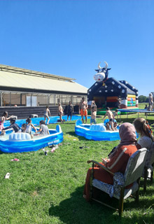 Het was geweldig om al die blije snoetjes van de spelende kinderen te zien. Het weer was erg warm, dus de wateractiviteiten sloten goed aan. Toch waren er een aantal jongens en mannen die in de hete sportzaal gingen voetballen.