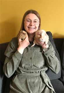 Doordeweeks is ons baasje met de andere meiden op maandag en vrijdag in Noorden, en geeft ze onder andere de cavia’s daar aandacht, (wij missen ze dan wel hoor) en doen ze andere activiteiten. Veder zijn ze de andere dagen in huis activiteiten aan het doen, dat vinden wij wel fijn want dan is ze lekker dichtbij. Ook bakt baasje graag lekkere dingen en daar smullen ze dan van, en wij moeten het dan doen met die gezonde groente…..maar goed wij mogen niet klagen, wij hebben het super hier met elkaar!